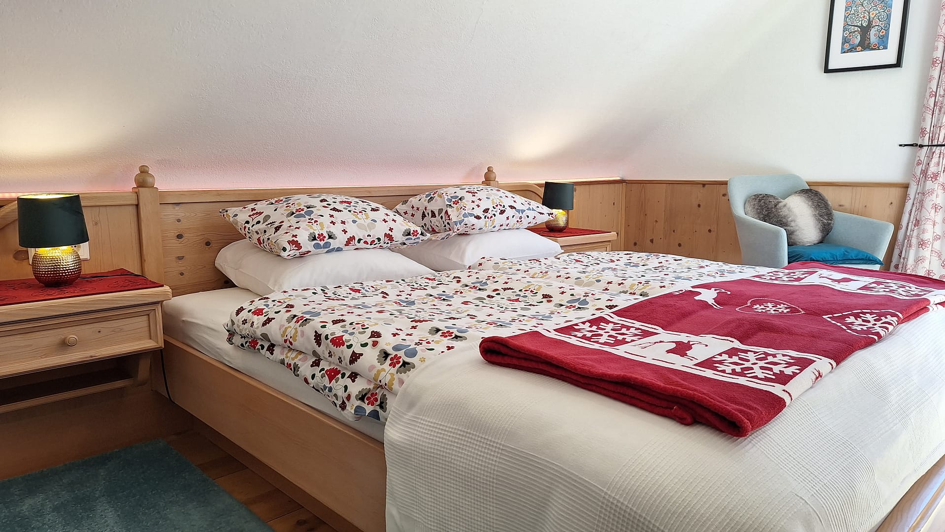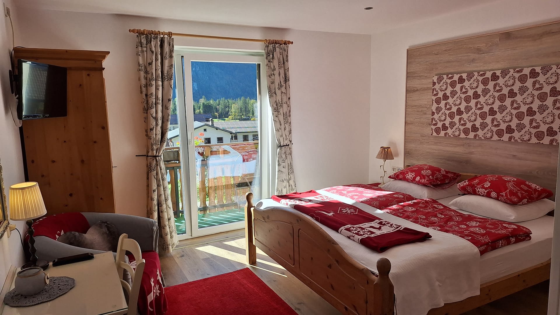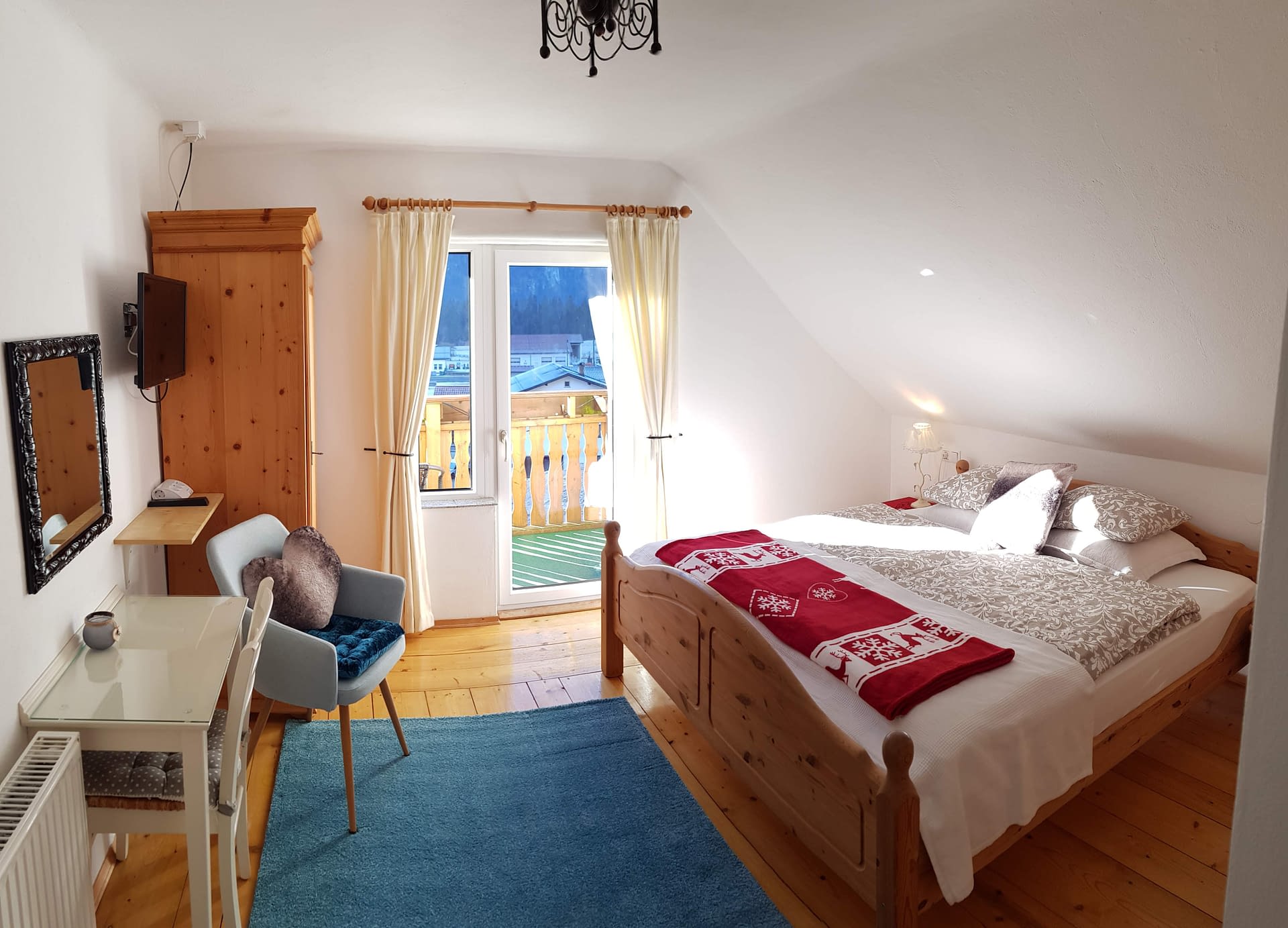 The double room with balcony is suitable for two people. The bed is 1.80 metres wide.